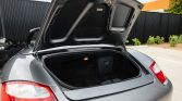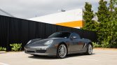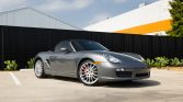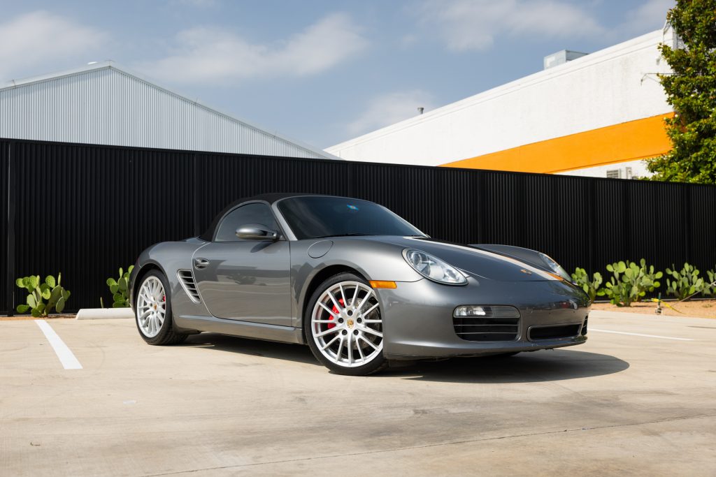 This 2008 Porsche Boxster S was the recipient of a replacement 3.4-liter flat-six in 2024 and a replacement six-speed manual transaxle in 2019. It is finished in Meteor Grey Metallic over black leather and is equipped with the Bose High-End Sound Package, hardback sport seats, a black soft top, 19″ SportDesign wheels, and a deployable rear spoiler.