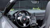 The hardback sport seats feature debossed Porsche crests on the headrests and are upholstered in black leather along with a color-coordinated dashboard and carpets. Other interior features include a Bose sound system, a wind deflector, cruise control, and Guards Red seatbelts.