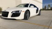 This 2009 Audi R8 coupe is finished in Ibis White over Black Nappa leather and powered by a 4.2-liter V8 paired with a six-speed manual transaxle and a Quattro all-wheel drive system. Equipment includes 19″ wheels, black side blades, the Premium package, heated and power-adjustable seats, a Bang & Olufsen sound system, Navigation Plus, and parking sensors. The car was delivered new to Suncoast Motorsports Audi of Sarasota, Florida and later relocated to Illinois where it was…