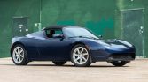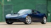 This 2010 Tesla Roadster Sport is finished in Twilight Blue Metallic over tan and black leather upholstery and retains a 375-volt electric motor paired with a 53-kWh lithium-ion battery pack and a direct-drive single-speed transmission. Equipment includes hard and soft tops, staggered-diameter wheels, air conditioning, heated seats, power windows, a JVC infotainment screen with navigation, and a seven-speaker sound system. The car has not been driven since 2017, and the battery pack is said to require replacement.