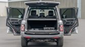 This 2012 Land Rover Range Rover is finished in Orkney Gray Metallic over Jet black leather and powered by a supercharged 5.0-liter V8 paired with a six-speed automatic transmission and a dual-range transfer case. Equipment includes electronic air suspension, all-terrain stability control, xenon headlights, a sunroof, rear privacy glass, power-adjustable heated and ventilated front seats, rear seat entertainment, and tri-zone automatic climate control.