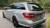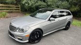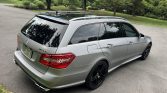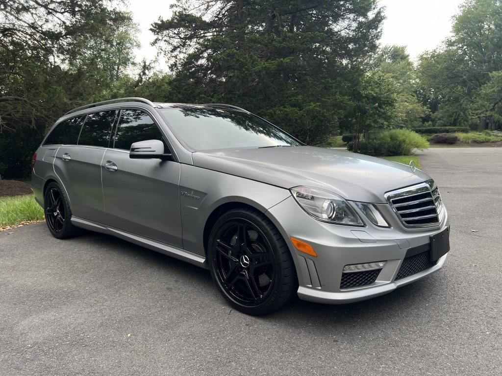 This 2012 Mercedes-Benz E63 AMG wagon is finished in Designo Alanite Gray Magno over black leather and is powered by a twin-turbocharged 5.5-liter M157 V8 linked to a seven-speed MCT automatic transmission. Equipment includes a panoramic sunroof, black 19″ AMG wheels, a back-up camera, heated and ventilated power front seats, dual-zone automatic climate control, and COMAND with navigation.
