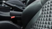 The heated power-adjustable seats are trimmed in black Fine Nappa leather with diamond-stitched accents that extend to the door panel inserts. Carbon Sigma decorative inlays accent the cabin, and amenities include a rearview camera, a Bang & Olufsen sound system, an auto-dimming mirror, automatic climate control, and an infotainment system with Audi navigation.