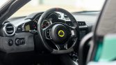 Silver 19″ and 20″ alloy wheels wear Lotus-branded center caps and are mounted with 235/35 front and 285/30 rear Michelin Pilot Sport Cup 2 tires. The car rides on a four-wheel independent suspension equipped with Bilstein dampers and Eibach springs. Stopping power is provided by yellow AP Racing four-piston calipers over ventilated discs. A brake fluid flush was completed in preparation for the sale.