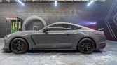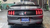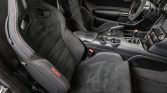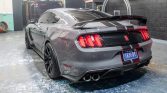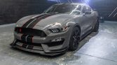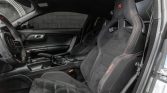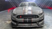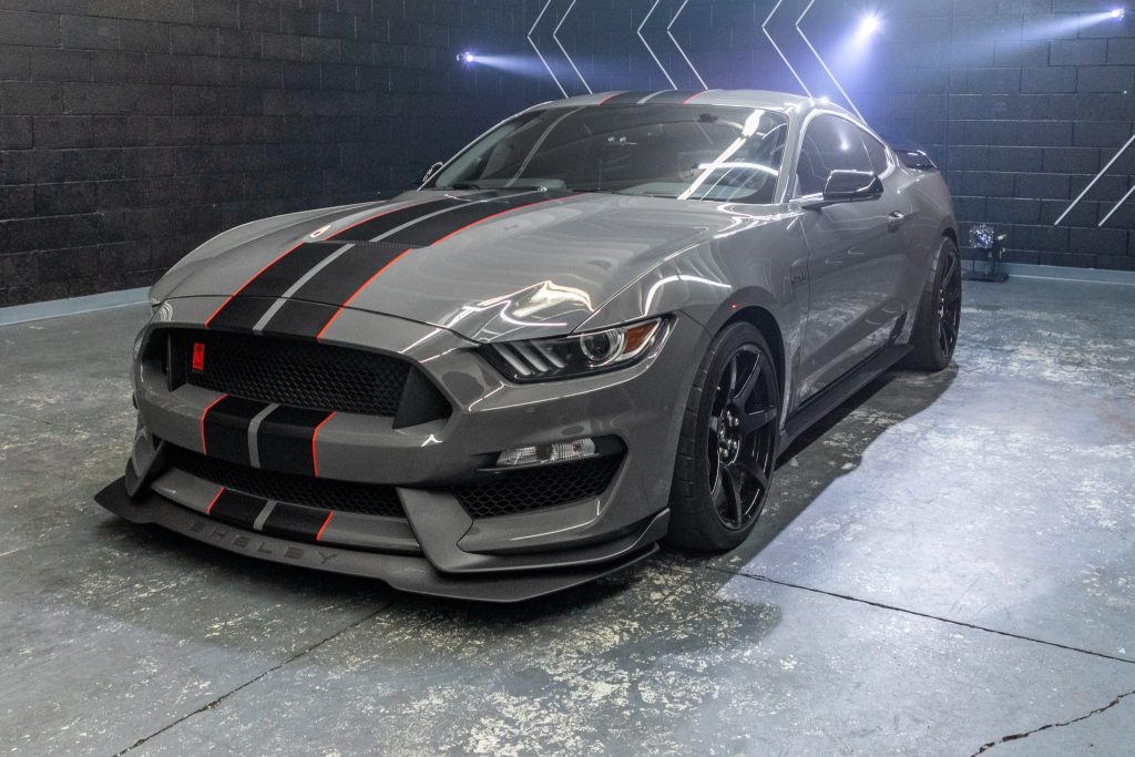 This 2018 Ford Mustang Shelby GT350R is powered by a 5.2-liter Voodoo V8 paired with a six-speed manual transmission and a Torsen limited-slip differential. The car is finished in Lead Foot Gray with black racing stripes over Ebony cloth and suede. Equipment includes 19″ carbon-fiber seven-spoke wheels, Brembo brake calipers, a carbon-fiber wing, a voice-activated touchscreen with navigation, a rearview camera, and Recaro seats.