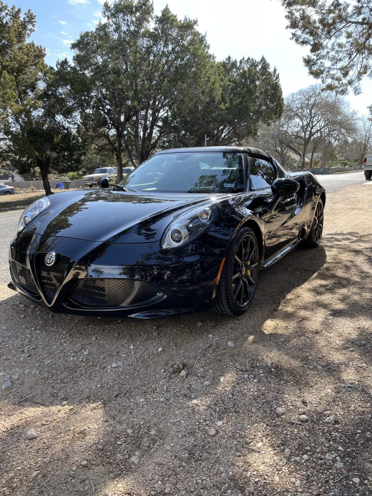 This 2019 Alfa Romeo 4C Spider was purchased new by the seller at Nyle Maxwell Alfa Romeo in Austin, Texas, and it now has just over 2,100 miles. The car is finished in black over Tobacco and black leather upholstery and is powered by a turbocharged 1.7-liter inline-four paired with a six-speed dual-clutch transaxle. Equipment includes bi-xenon headlights, 18″ and 19″ Dark Fan Spoke wheels, yellow-finished brake calipers, an Alpine premium audio system with a subwoofer, a…
