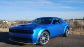 Silver 20″ Devil’s Rim forged alloy wheels wear 305/35 Pirelli tires at each corner. The Scat Pack Widebody package included a Widebody Competition suspension with adaptive shocks and four-wheel disc brakes with Brembo six-piston front calipers.