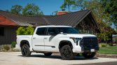 This 2024 Toyota Tundra 1794 Limited Edition is #142 of 1,500 examples produced for the model year. It is finished in Wind Chill Pearl over Rustic Cedar leather supplied by the Saddleback Leather Company. Power comes from a twin-turbocharged 3.4-liter V6 and an electric motor that are linked with a ten-speed automatic transmission and a dual-range transfer case. Fox internal-bypass coilovers and a 1.1″ suspension lift came standard on 1794 Limited Edition models, and the truck is further…